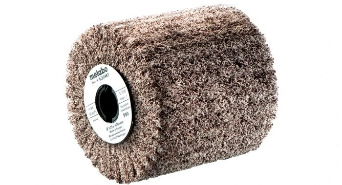 Elastisch nylonvlies met korrels voor schaduwvrij matteren, satineren en polijsten van roestvast staal en non-ferro metalen