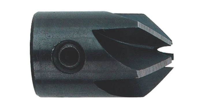 Opzetverzinker met 5 snijkanten van WS-staal voor verzinken met scherpe hoeken, met inbusbout om op houtspiraalboren te steken.