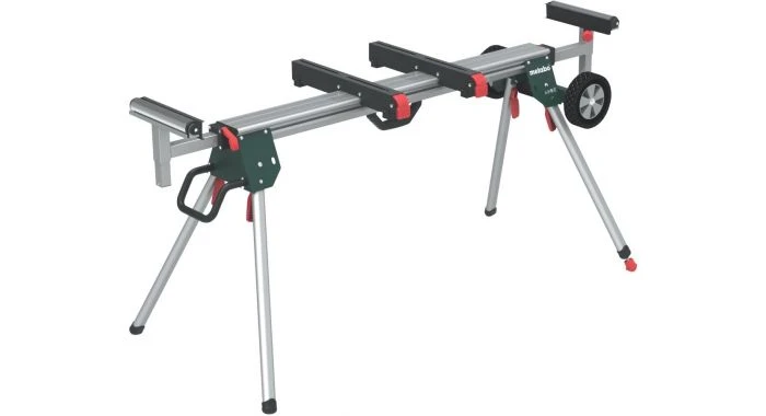 Licht en robuust verstekzaag – stand met trolley-functie voor mobiel gebruik ook met gemonteerde zaag.